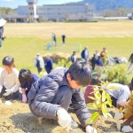 「稲むらの火といのちを守る植樹祭 」和歌山県広川町にある耐久中学校のグラウンドで開催されました。広川町は、津波被害を乗り越えながら自然と共生し、防災の知恵と意識を受け継いできた歴史ある町です。江戸時代の「稲むらの火」の物語を通じ、親から子、子から孫へと防災の精神が語り継がれています。 このたび、南海トラフ地震に備える新たな取り組みとして、地域の皆さんや全国のボランティアと共に「いのちを守る森」を作る植樹祭を開催しました。 広川町長は「この森は、約130メートルにわたって広がるものです。これは、浜口梧陵公が築いた600メートルの堤防と共に、町民でこのシンボルを守っていきたい ── そのような思いでいっぱいです。今日は、苗木を一本一本丁寧に植えていただきます。どうかその苗とともに、『防災意識』も心の中に育てていただければと思います。」と主催の挨拶をされました。 この潜在自然植生に基づいた森は、100年、1000年と天然更新により続き、津波からいのちを守る役割を果たします。この森が未来の世代への「百世の安堵」となり、人々の安全と地域の繁栄を支えるシンボルになることを願っています。