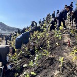 植樹日:2025年3月20日(木・祝) 植樹本数:5,029本 参加人数:817名(町内の全小中学校6校含む)